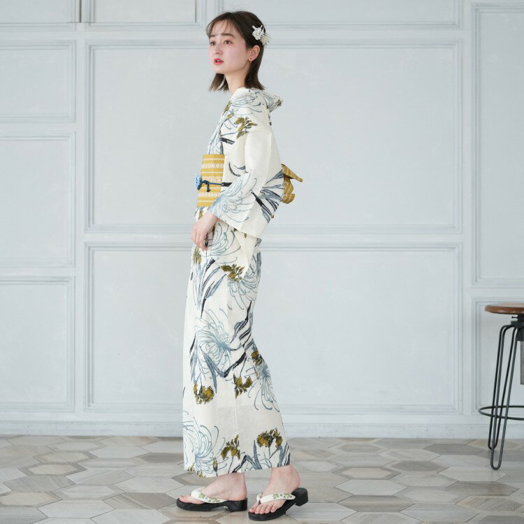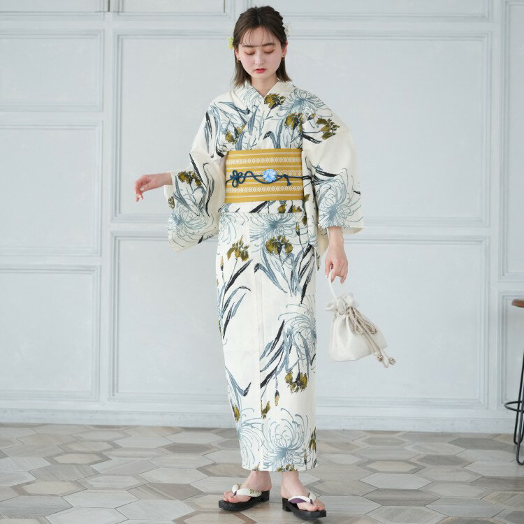 浴衣 セット レディース 浴衣 3点セット(浴衣/帯/下駄)日本製生地 国内染色 和歌山染工 クリーム 生成 きなり 白 黄色 ブルーグリーン 水色 鉄紺 大人 昭和初期アンティーク復刻 浴衣セット ゆかた 女性 レトロ Lサイズ トールサイズ 大きいサイズ